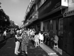 8月6日早上8时左右,不少老年人在某治疗仪体验馆前排队