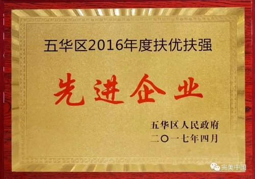 凭借2016年在昆明市五华区经济发展及非公党建等领域的积极贡献,完美(中国)有限公司云南分公司再次荣获五华区2016年度“扶优扶强先进企业”称号,两年共获得“扶优扶强”奖励金11.4万元。