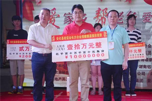 特大洪灾期间,绿之韵集团秉持“关爱生命,回馈社会”的理念,尽心竭力帮扶受灾地区灾后重建。继7月上旬绿之韵集团向浏阳重灾区捐赠200多万元爱心款物后,此次又向安化灾区捐赠爱心善款12万元,支援家乡灾后重建。