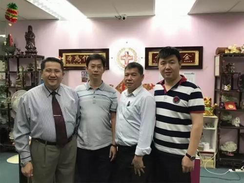 (马来西亚拿督、马来西亚一带一路总商会会长、医学博士Fong Kok Onn—冯国桉与企业领导及市场领导潘胜光合影)