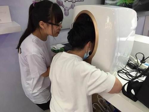 健康也要颜值,“养吧”配备的皮肤检测仪让不少爱美女士跃跃欲试,检测者只需要扫上“三眼”,即可洞察皮肤的年龄,还能检测到毛孔、皱纹、粗糙度、色斑等数据,为小伙伴的皮肤状况做出判断。