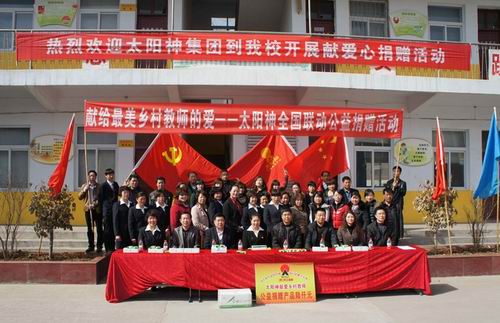 2012年—2013年,太阳神连续两年在全国各地发起“爱沐山区”公益活动,为山区孩子和教师们送去价值约500万元的日用产品、保健用品。