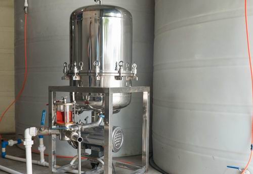 来到基地,首先引入眼帘的,是伫立在基地作业区醒目的大“罐子”,可不要小看了它,这是价格不菲的药液过滤装置,药液在进入洁净生产区之前,必须经过两道过滤工序,这是产品生产第一关。