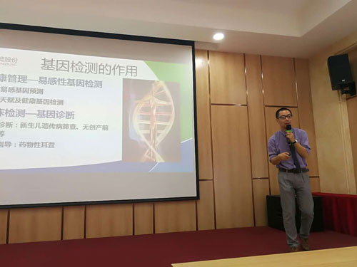 双迪股份兆和系统市场领导人彭涛为家人讲解基因检测相关知识。