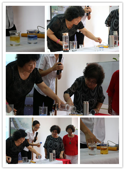 现场家人饶有兴趣地上台进行知水微型富氢制水器和市场同类产品对比实验