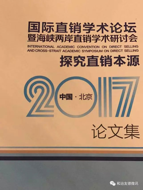 本次学术研讨会主题围绕“探究直销本源”,旨在强调坚持正统直销对于直销行业发展至关重要。会上,韩金明董事长以“和治友德应用IT技术对直销业务模式的创新”为题进行深入交流分享,所述内容同时被录入国际直销学术论坛暨海峡两岸直销学术研讨会论文集。