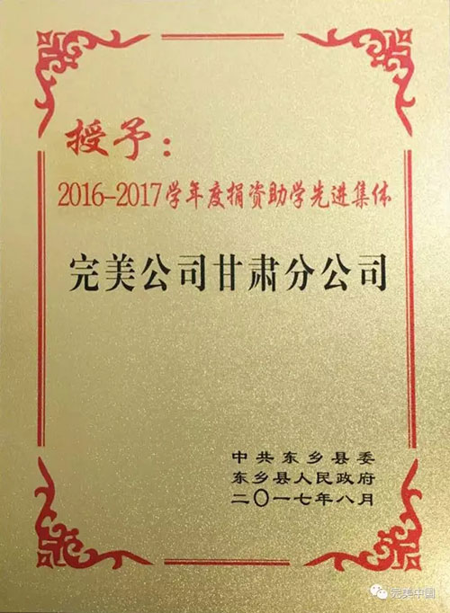 会议表彰了捐资助学的先进集体、十佳校长、优秀教师、优秀班主任、优秀教育工作者等。完美甘肃分公司喜获“捐资助学先进集体”荣誉称号。东乡县县委书记在专题讲话中表示,希望受到表彰的集体和个人,继续保持良好的教风学风,戒骄戒躁、再创佳绩,并号召各单位干部职工以先进集体和个人为榜样,加快全县教育事业均衡发展。