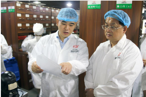 当天,康美药业副总经理李建华向调研组详细介绍了智慧药房的服务模式:智慧药房通过与合作机构进行系统对接,患者处方流转到智慧药房,由智慧药房的专业药学团队进行严格审方、精准调剂、科学煎煮,最终由专业团队送达患者,过程中多重复核,并且每一张处方,都可以通过处方单上唯一的条形码对生产环节进行记录,实现药物的精准追溯,从而保障药品品质与安全。