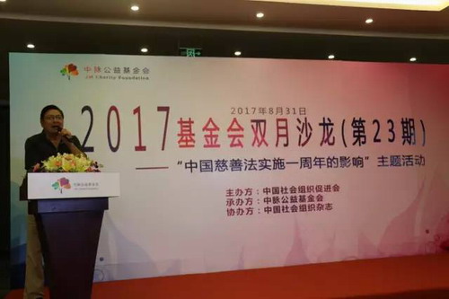 8月31日下午,由中脉公益基金会承办的中国社会组织促进会基金会分会双月沙龙(第二十三期)在中脉公益基金会会客厅举办。本期沙龙围绕"中国慈善法实施一周年的影响"这一主题来展开,分为主题演讲和圆桌论坛部分。