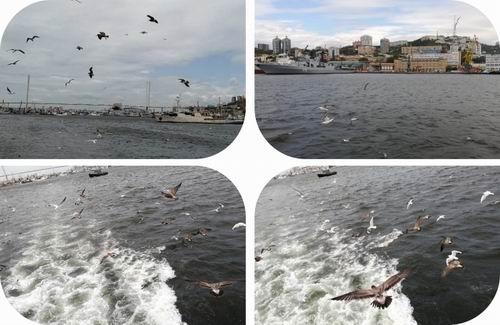 ▲今天的海鸥很多,它们似乎也感觉到即将离别的气息,纷纷盘旋在我们的周围,惬意地享受我们的投食。