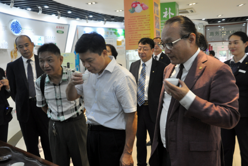 调研组领导一行先后参观了炎帝公司一楼文化展厅与四楼的健康管理检测中心,期间认真听取了有关炎帝公司企业资质和荣誉、系列优质产品、研发生产、种植基地、百年树人公益活动、健康管理项目等详细讲解。