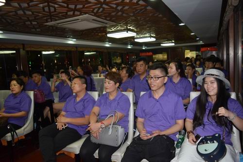 ▲吃过晚饭后,当然少不了来一次姑苏水上游,感受东方威尼斯的柔美。夜色中的古运河则多了几分静谧,几分妖娆。在这温暖的傍晚,伴着淡淡的夜色,游船带着家人们缓缓驶离新市桥畔的“古运河旅游码头”,粉墙黛瓦的仿古建筑、轻轻摇曳的竹林杨柳、曲折幽深的古道、波光流影的花驳岸,在灯光的映衬下,如梦似幻。还有一路评弹佐餐,丝竹悠扬,余音袅袅,不绝如缕,给家人们的身心带来了一场绝佳的体验。