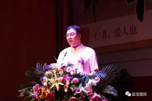 益宝集团董事长孔庆保先生为大会致欢迎词,他说“我会和大家共同努力,让中国益宝家喻户晓,让中国人在健康、财富、精神上都挺起我们的脊梁”。