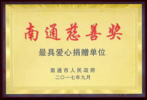安惠被评为“南通慈善奖”最具爱心捐赠企业