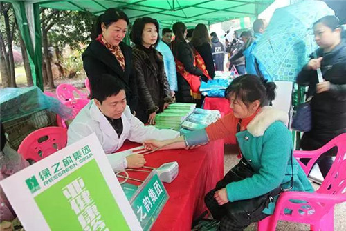 绿之韵集团董事、总裁劳嘉为消费者讲解如何识别假冒产品