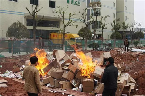 坚决打击侵权仿冒毒瘤,集中销毁假冒伪劣商品