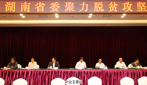 会议由致公党湖南省委专职副主委向佐谊主持。会上,致公党湖南省委副主委罗双全宣读了《致公党湖南省委聚力脱贫攻坚行动方案》工作报告,致公党各市委递交了《聚力脱贫攻坚行动承诺书》并作表态发言。随后,中共湖南省委统战部副巡视员符俊根讲话。他对致公党湖南省委为我省打赢脱贫攻坚战所做的种种工作表示肯定,希望各民主党派省委深刻认识到当前脱贫工作的重要性、紧迫性和艰巨性,把聚力脱贫攻坚作为重要的政治任务,摆上重要议事日程,聚合力量,发挥优势,充分调动各方面的积极性、主动性和创造性,全力支持党委政府打赢脱贫攻坚战,与统一战线其他成员一起,共同奏响统一战线聚力扶贫攻坚的胜利乐章。