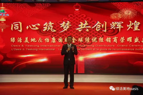 伴随着激情洋溢的“中国鼓舞秀”,会议帷幕正式拉开。绿活美地执行总裁孙传海先生发表致辞,孙总对来自国内外的销售精英及经销商伙伴们的到来表示热烈的欢迎;对长期以来不辞辛苦,奋战在市场一线的经销伙伴们表示由衷的肯定;对即将接受表彰的新晋级经销商表示衷心的祝贺。孙总表示,未来,我们将与全球经销商伙伴携手并进,同心筑梦,再创辉煌。绿活美地培训总监张伟女士还向与会经销商伙伴们全方面、多角度地介绍了公司,为经销商伙伴们开拓市场注入新的动力。
