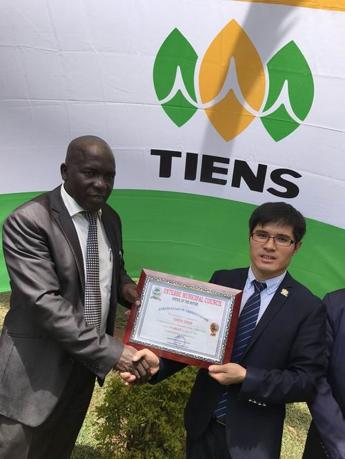 恩德培市市长向天狮乌干达分公司颁发荣誉证书