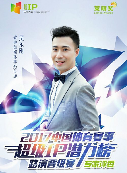 2017年9月1日,“2017中国体育赛事 超级IP潜力榜路演晋级赛”在北京隆重举行。玫琳凯媒体事务经理吴永刚受邀出任此次盛典的专家评委。
