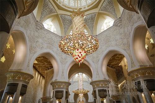 作为阿联酋的标志性建筑,这里简直就是集尽奢华,它不仅是阿联酋最大的清真寺,还囊括了许多世界之最:最昂贵的造价,最多的黄金,最大的水晶吊灯,最大的手工编织地毯……