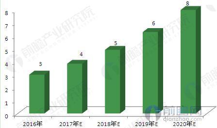 2016-2020年大健康产业市场规模及预测(单位:亿元)