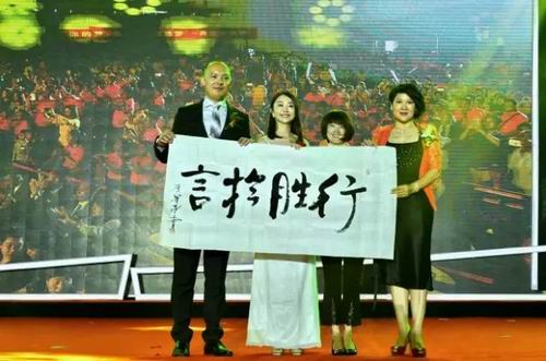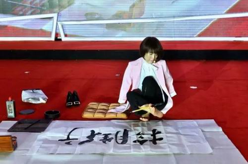 李智华女士用灵巧的双脚写出了书法作品——“行胜于言”