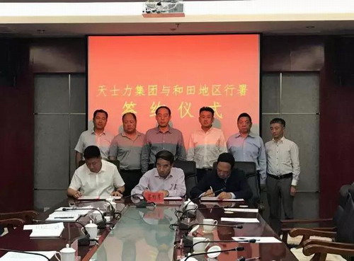 艾则孜·木沙、闫希军、张伟分别代表于田地区行署、天士力控股集团和天津市援疆工作前方指挥部签订了《关于发展和田地区肉苁蓉产业项目框架协议书》。天士力集团将先期投资2500余万元,在和田地区于田县天津工业园区启动“肉苁蓉中药材规模化、规范化、科学化初加工生产基地项目”,该项目启动后将率先带动并规范和田地区5万亩肉苁蓉种植产业发展,每年实现加工生产鲜货肉苁蓉5000吨,解决300人劳动就业和向产业工人转型问题,并帮助实现肉苁蓉种植户的脱贫致富,同时逐步形成肉苁蓉种植、加工、流通、销售平台,为今后的深加工奠定基础。和田地区行署提出:希望天士力集团依托自身技术、人才、市场优势,在于田天津工业园实施“一特产、一鲜花、一药茶、一通道、一丰碑”的“五个一工程”的需求建议,深挖维吾尔药茶和维吾尔医药潜力。