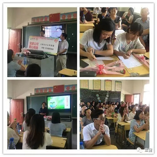 大畈镇宝健希望小学共有教师20余名教师,多为80、90后,对宝健爱心团队讲解的营养学知识非常感兴趣,通过爱心团队的健康知识普及后,老师们表示要从现在保养好身体,健康工作50年。
