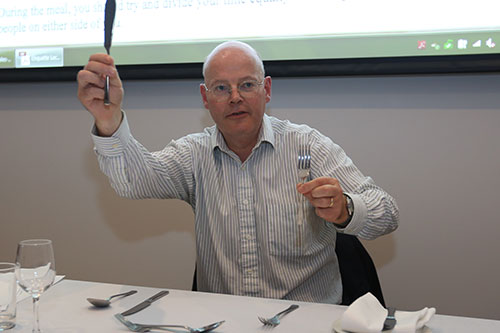 下午,牛津大学Simon Jones教授为大家讲授了英国贵族礼仪课程。教授用幽默风趣地语言让星级领导人感受着百年积淀的英式正统礼仪。