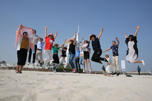 随后,星级领导人来到久负盛名的Jumeirah海滨天然浴场。在这里,首先映入眼帘的是波斯湾蔚蓝清澈的海水和细腻柔软的白色沙滩,以及堪称世界顶级豪华的“七星”酒店——帆船酒店。在这个一半是海水一半是沙漠的迪拜之城,星级领导人尽情地享受着阳光、沙滩、海浪,放飞自我、绽放激情。