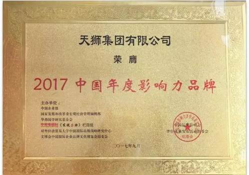 2017年9月14日,在北京人民大会堂举行的2017(第四届)中国品牌影响力评价成果发布活动颁奖典礼上,天狮集团李金元董事长荣获“2017中国品牌影响力(行业)十大创新企业家”荣誉,同时,天狮集团获得“2017中国年度影响力品牌”奖项。天狮集团在企业领导力、打造自主品牌,引领创新创业方面的卓越表现再获实质肯定。