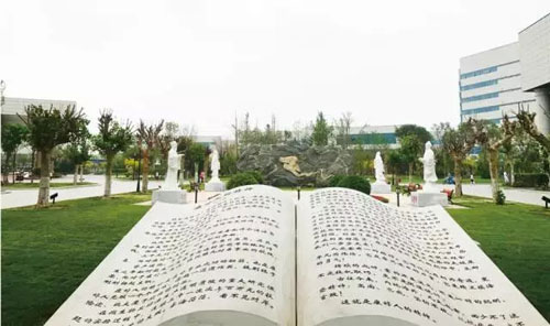 康婷健康事业产业园西门石书上《康婷人的精神》由康婷董事长刘小兵亲自编撰