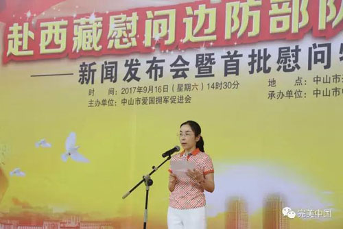 完美公司总经理、党委书记赵建红出席了发车仪式,并在致辞中表示,“中山西藏拥军万里行”活动发扬了中山市“拥军优属,拥政爱民”的优良传统,进一步推动“双拥”工作发展,巩固军政军民团结。完美公司将一如既往支持地方经济建设和社会稳定,为社会繁荣、稳定发展作出更大贡献。