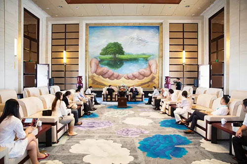 陈总一行人在天狮集团领导陪同下参观了天元大学和博物馆。座谈中,李金元董事长将创办天元大学的初衷娓娓道来——就是为了完成儿时的一个教育梦,他从创建事业体系获得资金,继而规划天狮学院的历史开始讲述,讲到历经事业起伏期、资金短缺期,仍倾力筹划建立一所国际化、社会化、现代化的综合性大学。大学总占地面积3.2平方公里、建筑面积210万平方米、预计投资100亿元、可容纳3万学生,目前一期工程首批建筑已经投用。来访客人们纷纷对李金元董事长在教育上倾注的巨大心力表示钦佩。在天狮博物馆,客人在深入了解天狮22年发展历程后,对李金元董事长“健康人类,服务社会”的宏大志向深表敬意,同时祝愿天狮集团基业长青,再创辉煌。