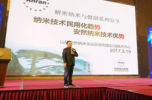 安然公司技术总裁张明臣先生讲解安然纳米产品知识,让现场伙伴直观地认识到纳米产品为身体健康带来的帮助。