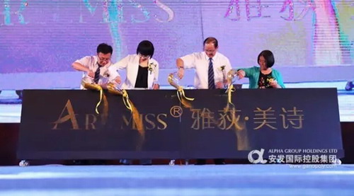 观看精美的雅荻美诗新品形象片之后,安发国际董事长高益槐教授、文教副总裁唐文波教授、物流部总监陆为民先生,市场领导人于淑芹老师共同开启了启动仪式,火热点燃现场。