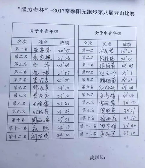 隆力奇杯常熟市阳光跑步俱乐部登山比赛开幕