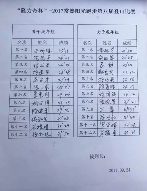 隆力奇杯常熟市阳光跑步俱乐部登山比赛开幕