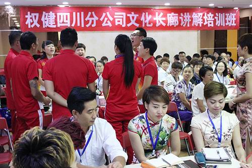 权健四川分公司陈丽娟经理的开场致辞拉开了本次培训序幕。在一开始的破冰活动中,权健家人们带来了活力满满的舞蹈,瞬间点燃了全场的气氛,接下来分组、选组长、团队士气展示环环紧扣,解除学员们之间陌生感的同时,更加调动了学员们的学习热情。