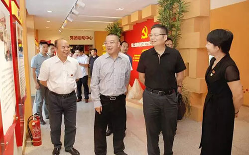 为加强非公经济党组织建设,引导非公经济健康发展和非公经济人士健康成长,大力营造浓厚的党建工作氛围,2017年9月26日,中共湖南省委组织部副部长、省委“两新”工委书记蔡建和,中共湖南省委“两新”工委办公室主任蔡文辉一行莅临绿之韵集团调研。中共长沙市委常委、组织部长张宏益,中共长沙市委“两新”工委专职副书记肖剑锋,浏阳经开区党工委书记郭力夫,浏阳经开区党工委委员、管委会副主任邹先瑜,浏阳经开区党工委委员、纪工委书记肖赛男等陪同调研。绿之韵集团董事长胡国安,董事总裁劳嘉,党委书记刘云、副书记许达仲等全程陪同。