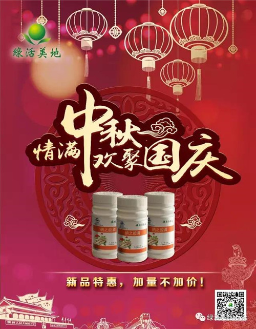 情满中秋,礼惠国庆,双节来临之际,为答谢新老顾客,绿活美公司特推出新版纳之胶囊,加量不加价,原400元零售价格不变,加量25%(原60粒/瓶升级为75粒/瓶),即日起隆重上市,优惠更多,欢迎订购!