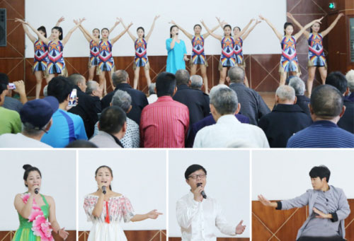 权健(华东)文工团的年轻表演者们为老人们带来精彩的歌舞表演