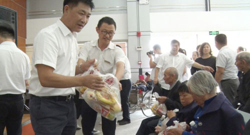 江苏权健科技发展有限公司副总单龙军代表集团为老人们送上慰问品