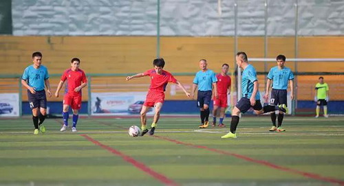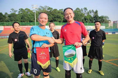 比赛正式开始!绿茵场上,大家尽情挥洒激情的汗水,传球、带球、射球……脚法丝毫不亚于专业球员。