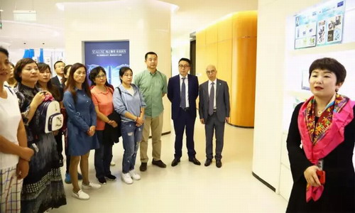 作为本次公安英烈妻子休养活动的重要环节,公安部中国公安民警英烈基金会副秘书长毕重谦专程带领39名公安英烈妻子代表们来到绿叶。 在绿叶科技集团董事长徐建成、总裁李仙霖、高级副总裁韩静、副总裁王丛等公司高管的陪同下,休养团一行参观了绿叶科技集团生产制造中心、企业文化厅、产品展示厅、会议中心等处。