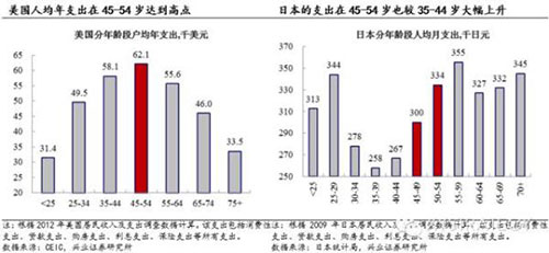 3、人口结构的变迁带来医疗保健、保险、高端教育、家庭服务、人工智能、传媒、体育、娱乐、文化的需求升级。从消费结构来看,消费者在不同年龄段消费倾向不同,70后社会中坚力量步入中年,将大大推动以“保险、医疗保健、家庭服务、人工智能”为典型代表的“大健康”需求。