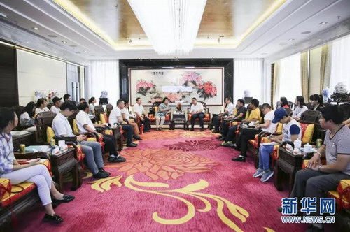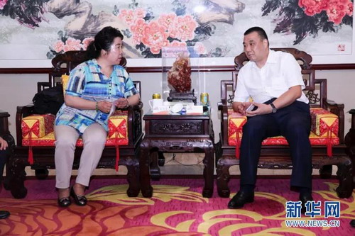 西藏自治区工业和信息化厅副厅长安央金与康美药业董事长、总经理马兴田进行座谈