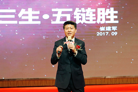 三生(中国)运营中心副总裁崔建军为现场伙伴讲解三生·五链胜计划,三生将全力打造以“测、调、保、疗”业务基础的健康链,依托有享甄选为核心精品商城的消费链,以六大价值为目标的价值链,以直销、电商、微商、千城万馆为一体的模式链,以消费无忧、双倍返利为保障的创业链,五链胜计划为三生事业平台实力升级。与此同时,崔总还以《规范促和谐,自律赢尊重》为主题,从“当前直销形势”、“常见违规行为”、“机遇与挑战”三方面对三生市场运营规划进行解读。