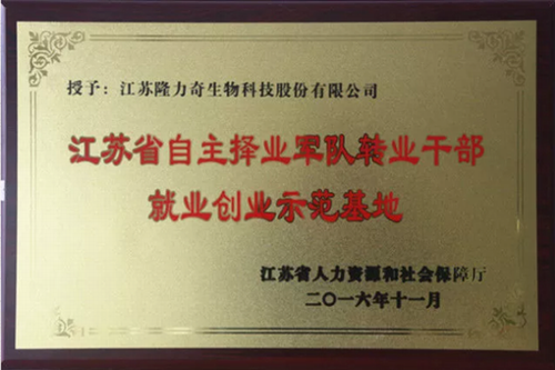 江苏省自主择业军队转业干部就业创业示范基地奖牌
